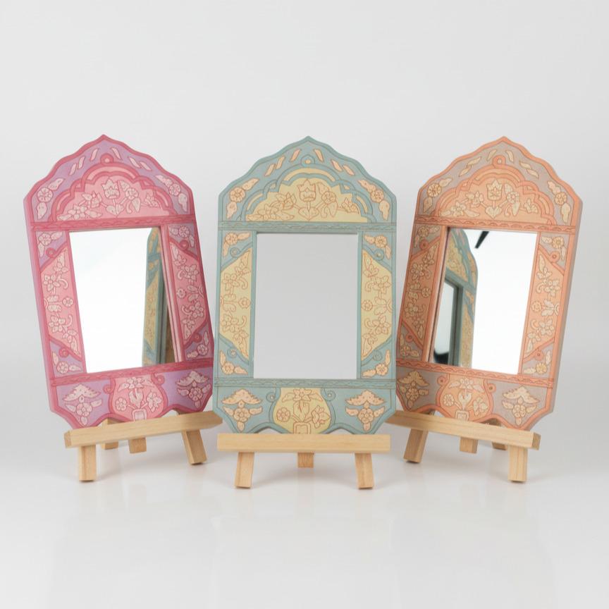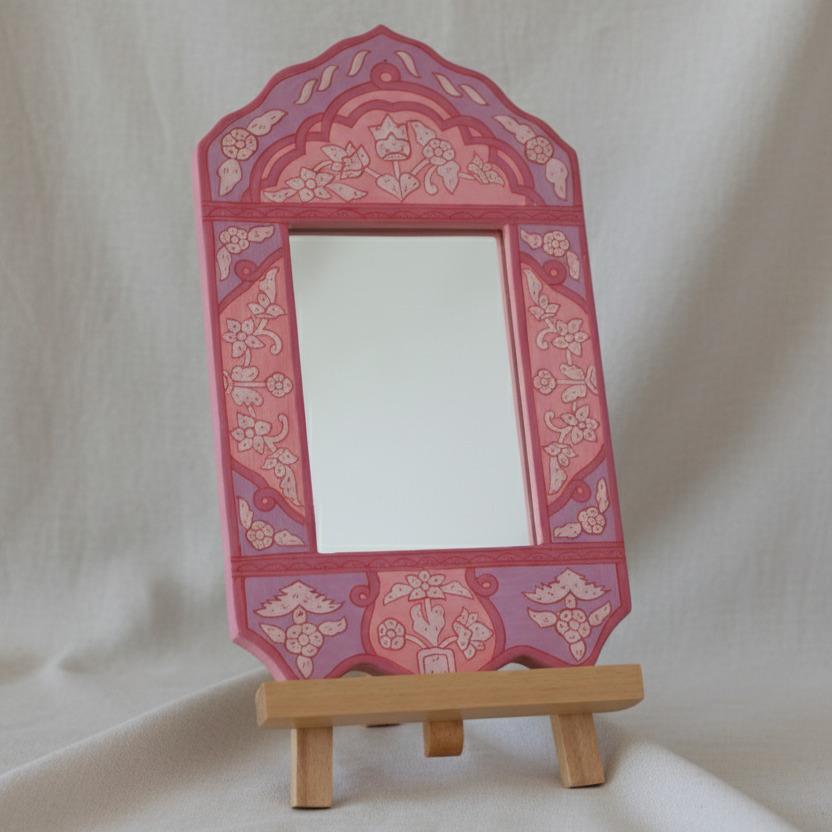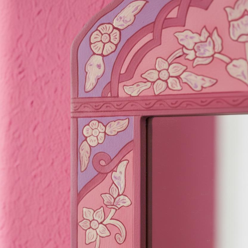 A delicate decorative mirror inspired by traditional Moroccan archways. The Dome Mirror is handmade from wood and carefully hand-painted by artisans, featuring intricate floral motifs that add warmth and charm to any space.